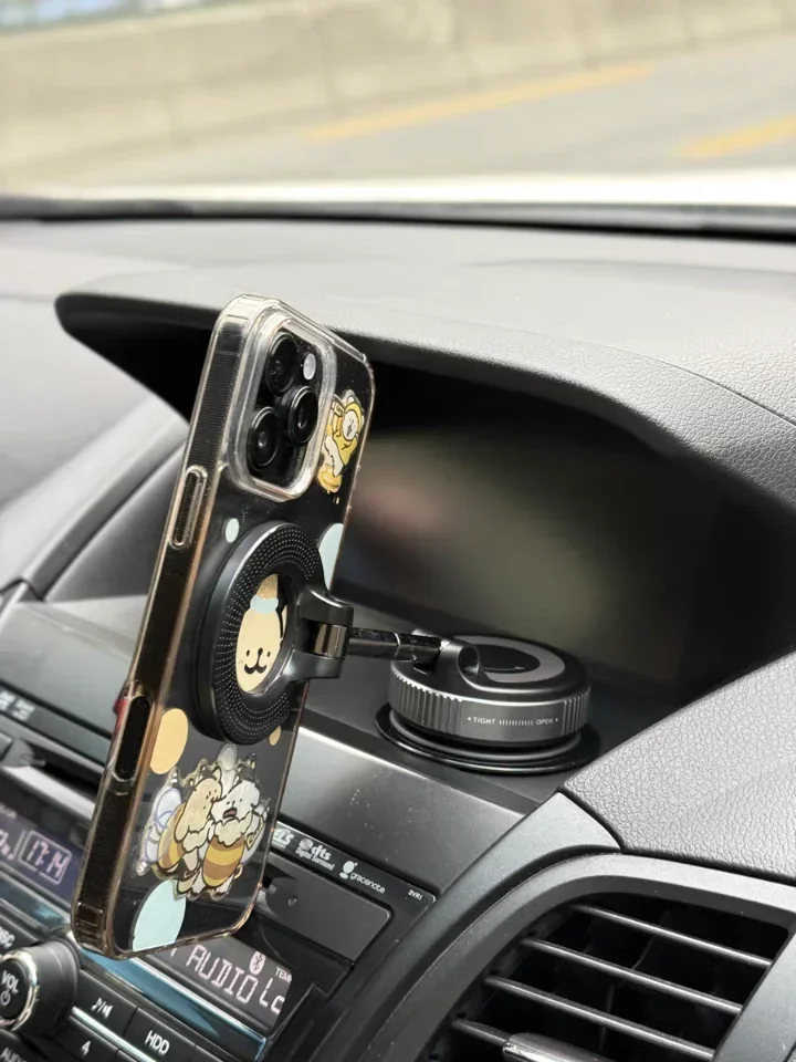 ✅ The vacuum suction + magnetic design ensures a firm, slip-free hold. It stays in place even on bumpy roads.